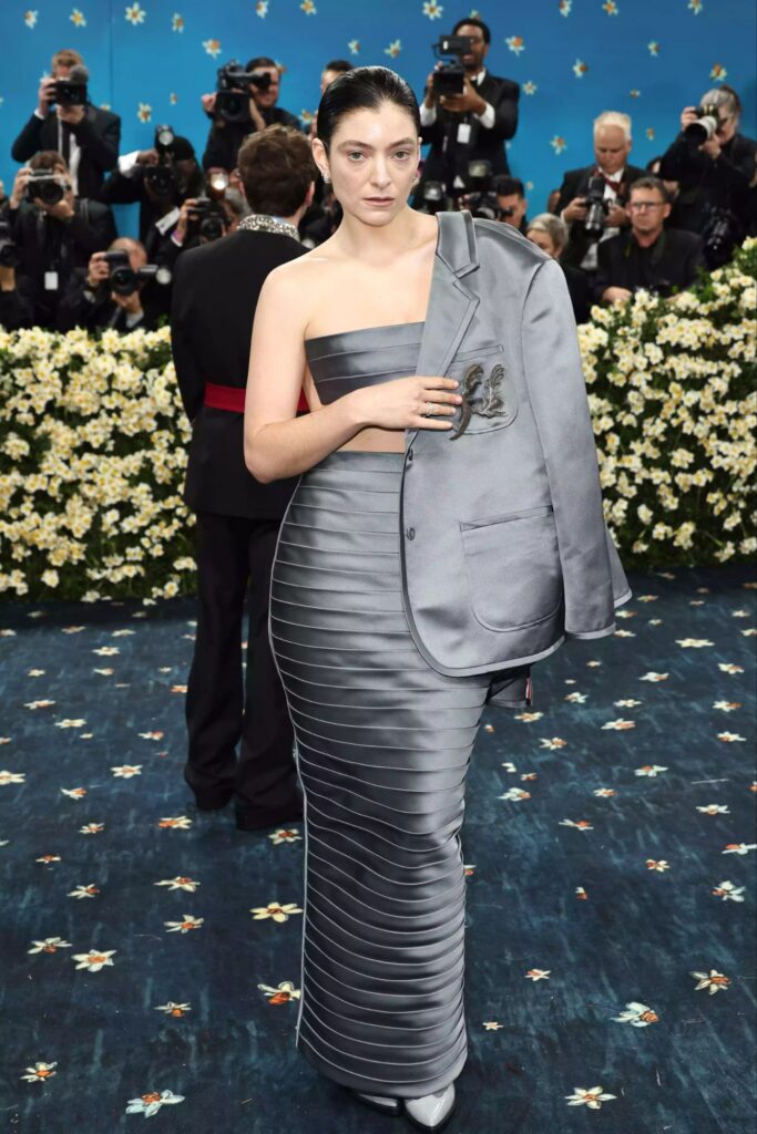 Lorde, Tom Braun dizaynı olan gümüşü bantlı üst, korsetli ətək və uyğun pencəklə gecəyə qatıldı. Gümüş balıq fiqurlu hörük saç düzümü və neytral makiyajı onun gender ifadəsini və fərdiliyini vurğuladı. Bu görünüş, iyunun 27-də çıxacaq “Virgin” albomunun təqdimatı kontekstində də simvolik idi.
